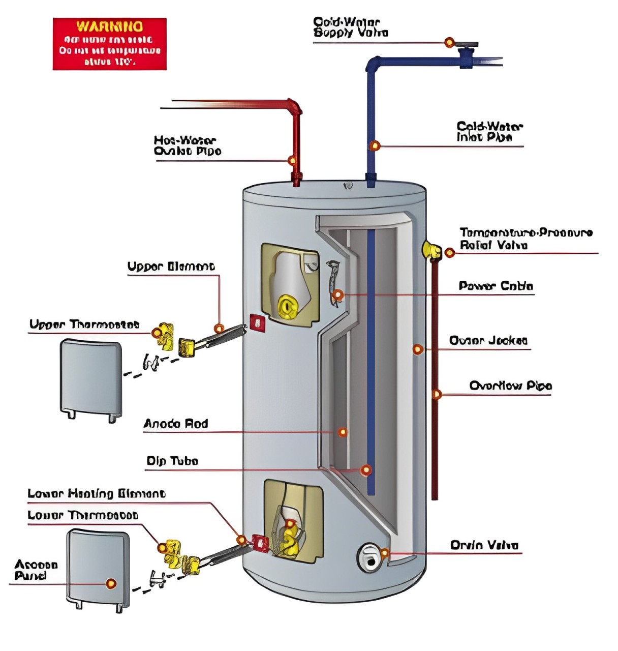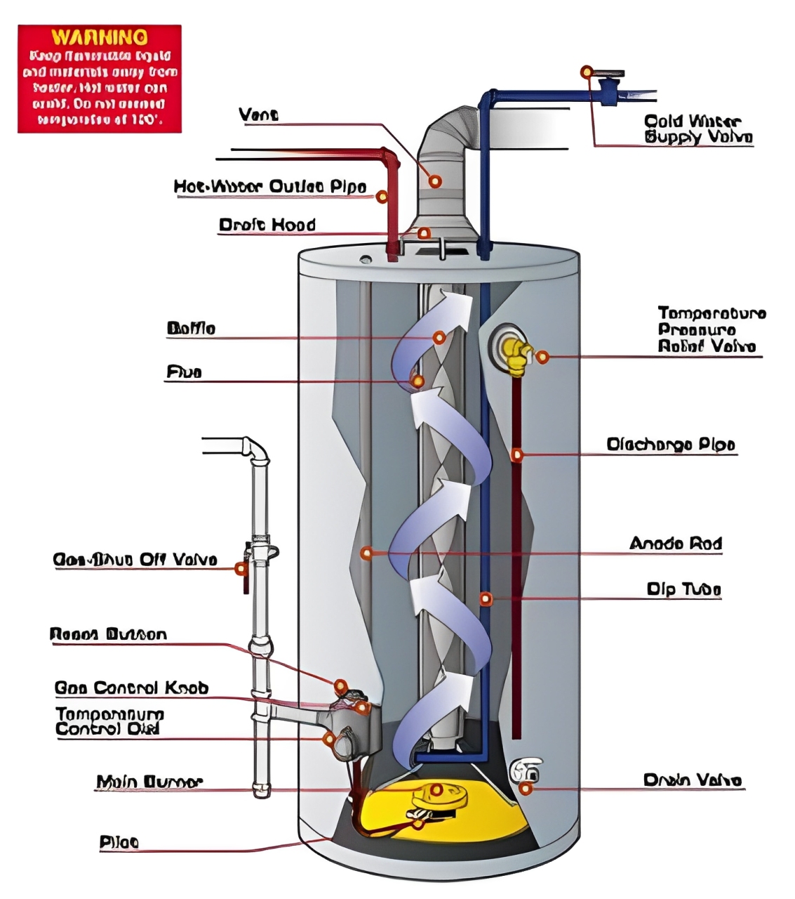Water heaters heat your homes water by taking in cold water through the supply pipe, heating the water until the temperature reaches your desired heat setting and then sending hot water out the delivery pipe to your homes piping infrastructure. Tank Water heaters also have the job of keeping the water warm after heating awaiting your use. The water is kept warm by insulation wrapped around the tank. The amount of hot water available is dictated by the gallon size of your traditional water heater, or heating capabilities of your tankless water heater, and the recovery rate of your water heater.